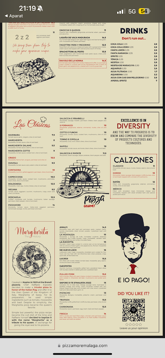 Don’t forget to indulge in their exquisite desserts, such as the classic Cannoli Siciliani or the decadent Tiramisú Pistacho y Nutella. With rave reviews praising both the authentic dishes and the inviting atmosphere, Pizzamore is a must-visit for any pizza lover.